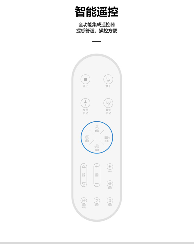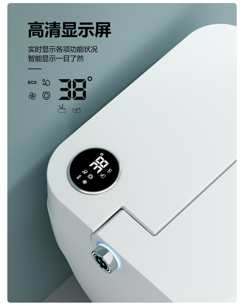 自动翻盖,脚感冲水,一键按钮,LED显示屏,座位调节,暖风烘干,夜灯照明,IPX4防水淋,喷杆自洁,防菌,坐温,水温可调