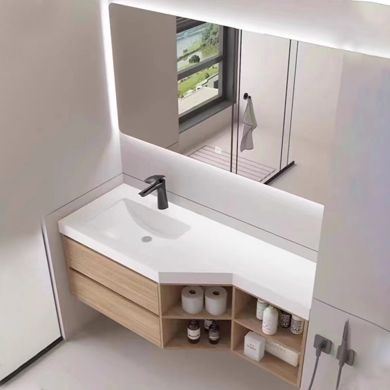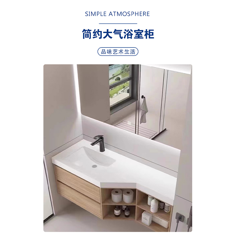 切角储物格浴室柜,免费上门测量出方案,支持颜色、款式、台面、台盆、镜柜等多种定制服务